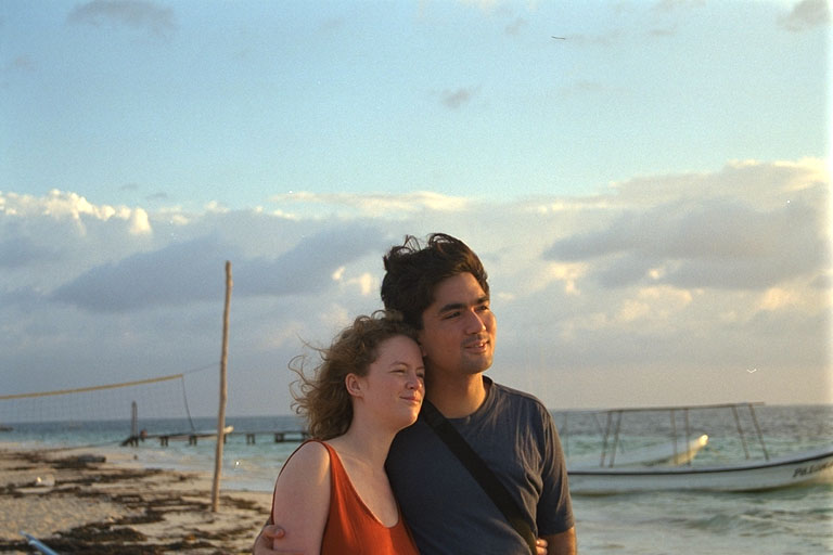 | John and Kristen on the beach in Puerto Morelos, March 1999.