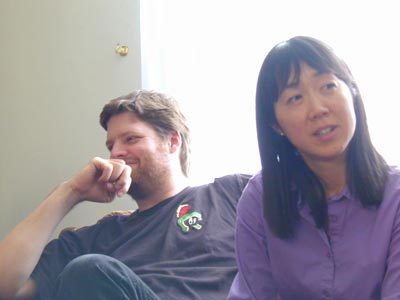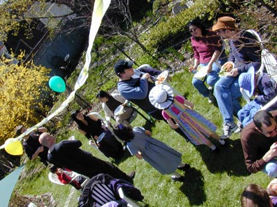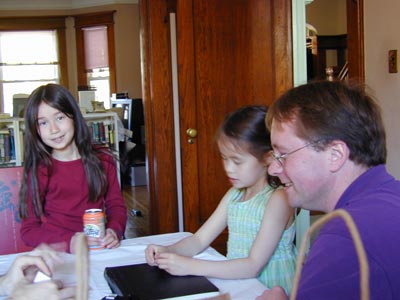 David, Daniel and Ken arrive. Tom in foreground, Leslie and Kristen continue to chat.