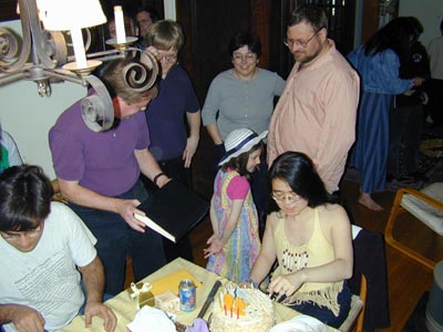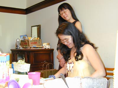 Tami, Mark and Debbie look on as Michelle opens Craig's present.