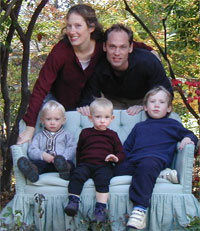 [2002-09-16] Molly is on hiatus from being a professor of Renaissance literature. She lives in Amherst, Massachusetts with her husband, Christoph Cox (a professor of philosophy and musical culture) and their three kids (son, 5; son and daughter, 2.5 -- yes, twins). She invites anyone from the class of '81, should they find themselves in the wilds of the Happy Valley, a.k.a. the Northampton/Amherst area, to stop in and say hi. [2004-10-21] Molly's children are two years older and now have a baby brother, eleven-month-old Aengus. |
